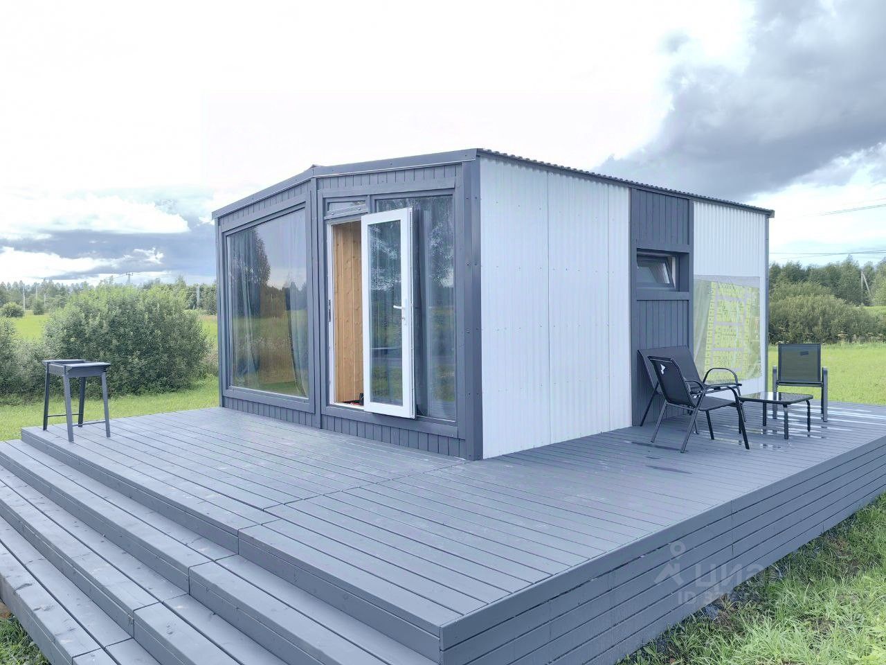 В доме: Кухня-гостиная, спальня, санузел и веранда.