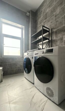 В доме на 1 этаже : 1 спальня, гостиная, кухня, столовая, гардеробная, прачечная, котельная, санузел; 2-й этаж находится в состоянии ремонта, все подготовлено (в том числе строительные и отделочные материалы) под : 4 спальни, 2 санузла, гардеробную. Дом просторный, вся мебель, электронная и бытовая техника остаётся в качестве подарка.