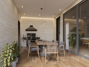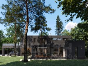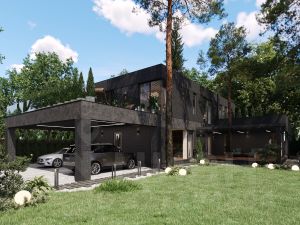 На участке — вековые дубы и ели, декоративная подсветка и парковка на 6 авто (2 под навесом). Изюминка проекта — крытая терраса с прозрачной кровлей, в которую интегрирована живая корабельная сосна, и оборудованная зона барбекю.