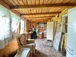 Дом специально ставился в углу участка, для того, чтобы была возможность поставить на участке ещё одно полноценное строение. Пристроена веренда 14 кв.м. Начато строительство бани, вплотную к дому, не достроена, но материал куплен.