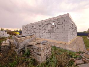 • Стены возвели весной 2025г. Возведение стен, заливка перемычек над проемами и армопояса, возведение вентканалов и дымохода из кирпича до армопояса. (Газоблок и клей Исткульт D400 625*400*250, кирпич могилев)