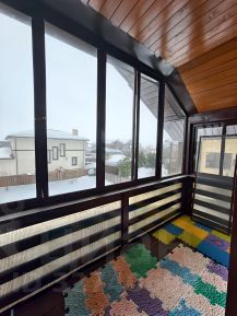 Дом из sip панелей собирался в Финляндии, облицовка из лиственницы. Функциональная планировка: 2 сан.узла, 4 спальни, кухня -гостиная, гардеробная комната, несколько закрытых террас, лоджий, теплый закрытый гараж, три м/м под навесом. Внутренняя отделка в классическом стиле из дорогих материалов. На стенах обои, плитка итальянская коллекционная. На полу ламинат; в зоне кухни - плитка; санузел, прихожая и холл с водяным подогревом. Лестница деревянная из лиственницы. Электрика АBB (Германия). Двери шпонированные "Union" (Италия).Кондиционеры во всех комнатах. Есть рабочий проект всех разделов: система отопления, тёплого пола, водоснабжения, канализация и вентиляция дома и бани.