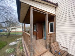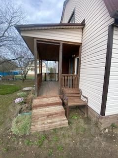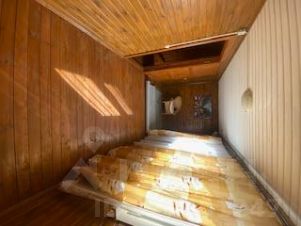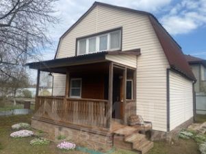 ДОМ: 1-й этаж большая комната, кухня; 2-й этаж три комнаты. Дом щитовой, отделанный сайдингом, крыша ондулин, отопление электрическое, сан узел на улице.