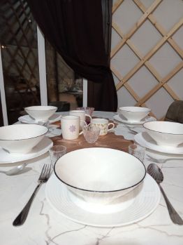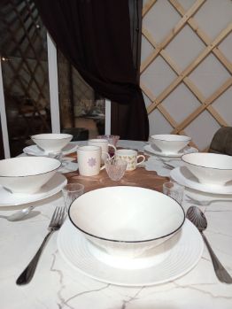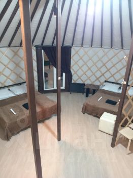 Вашему вниманию представляется уникальное место силы — идеальное пространство для жизни и отдыха, пропитанное духом северных традиций. Здесь вы сможете ощутить гармонию природы, поселившись в настоящей юрте, оборудованной всеми удобствами современного быта: от кухонного гарнитура и холодильника до стиральной машины, индукционной плиты. Внутри юрты вас ждет уютное жилище площадью 50 квадратных метров, две спальни с двуспальными кроватями (+раскладушка), ванную комнату, кухню-гостиную, столом и стульями для комфортного времяпровождения.