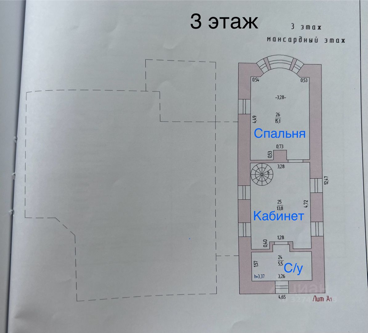 3 этаж: спальня, санузел, кабинет-библиотека.