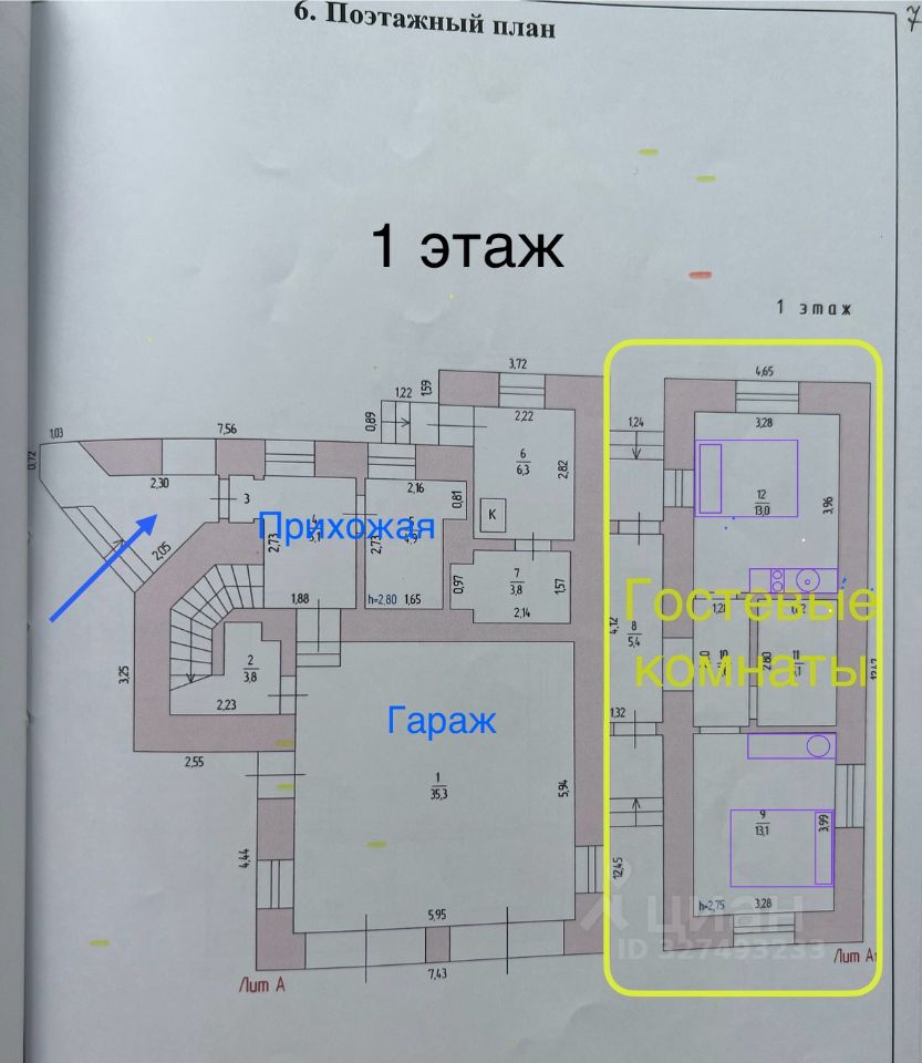 1 этаж: Гараж на 2 м/м, прихожая, кладовая, котельная, 2 квартиры-студии для персонала/бабушек-дедушек (можно объединить между собой и с хозяйским домом), 3 санузла.