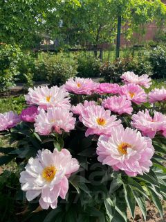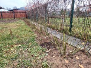 Высажены молодые фруктовые деревья и кусты. Много цветов.