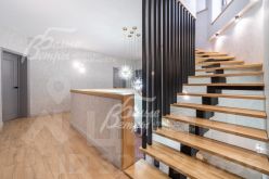 Код объекта в БД Агентства: 559-903. Дубки СНТ. Меблированный кирпичный дом с привлекательной архитектурой в традициях альпийского шале и большой площадью остекления. Дом наполнен светом, в нём - просторные помещения, пять спален, одна из них - на первом этаже, жилые цокольный и мансардный этажи, мастер-спальня впечатляет высокими потолками. Интерьер в стиле эклектики с элементами ар-деко и лофта дополнен дизайнерскими предметами декора и мебели, декоративными фресками, 3D-панелями из ясеня, стильной удобной лестницей. Дом стоит на благоустроенном участке с высаженными туями, елями, цветочными композициями, тёплой беседкой барбекю. Участок находится в охраняемом коттеджном посёлке рядом с городской инфраструктурой и лесопарковой зоной. Год постройки: 2022. коробка дома выполнена в 2008 году. Материал стен: кирпич. Облицовка стен: комбинированная. Стадия готовности: меблирован. Описание внутренней отделки: качественная современная отделка дома выполнена в стиле эклектики с элементами ар-деко и лофта. Стены обои, в отдельных зонах — частично на кухне, на лестничном проёме и в спальнях — немецкие обои с имитацией штукатурки, в детских спальнях стены оформлены под кирпич, в мастер-спальне и санузле на первом этаже стены украшены фресками Affresco (в санузле - со специальной влагозащитной эмалью). Стена в гостиной за телевизором - из гипсовых панелей. Холл и гостиная дополнены декоративными рейками из ясеня, перекликающимися с дизайном лестницы, а также 3D-панелями ORAC DECOR с рейками из ясеня. Создан декоративный портал, имитирующий камин. На полу кухни уложен керамогранит Laparet Stubay Onyx Crema имитирующий оникс, в гостиной и спальнях — ламинат, во всех санузлах — керамогранит Atlas Concorde. Потолки выполнены из гипсокартона, в отдельных зонах многоуровневые конструкции. Тёплые полы смонтированы везде, где есть плиточное покрытие. Установлены внутрипольные конвекторы Askon в гостиной, на кухне и в мастер-спальне, а также вертикальные радиаторы чёрного матового цвета Irsap (Италия). Электромонтаж выполнен с особым вниманием к удобству: количество розеток превышает стандартные требования, розетки и выключатели чёрные, матовые, плоские. Интерьер дополняют межкомнатные двери из массива лиственницы, вандалоустойчивая двустворчатая дверь в кухню со стеклом при входе на кухню, также есть двери скрытого монтажа Инвизибл. Мощная входная дверь с терморазрывом. На второй этаж ведёт широкая и удобная монолитная лестница, отделанная массивом ясеня. Инженерное обеспечение: система отопления представлена итальянским газовым котлом Baxi мощностью 63 кВт, горячее водоснабжение обеспечивается бойлером Kospel объёмом 200 л. Для воды предусмотрена многоступенчатая система очистки BWT. На кухне установлена вытяжка KUPPERSBERG, в санузлах принудительная вентиляция. В гостиной и на кухне смонтированы два кондиционера Haier. Есть мастер-выключатель, много проходных выключателей света. Резервный генератор.. Мебель, оборудование: Кухня-столовая зонирована на 3 части: а) столовая с обеденным столом из сатинированного стекла "под мрамор", велюровые стульями - у панорамного окна. для семейных обедов; б) зона отдыха с диваном и телевизор LG 65 дюймов; в) кухонная зона с гарнитуром с комбинированными фасадами ("под акацию", матовые черные, золотистые) со всей необходимой встроенной техникой (газовая в