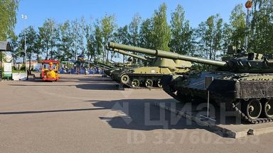 Парк с военной техникой, детский парк, школы и детсады.