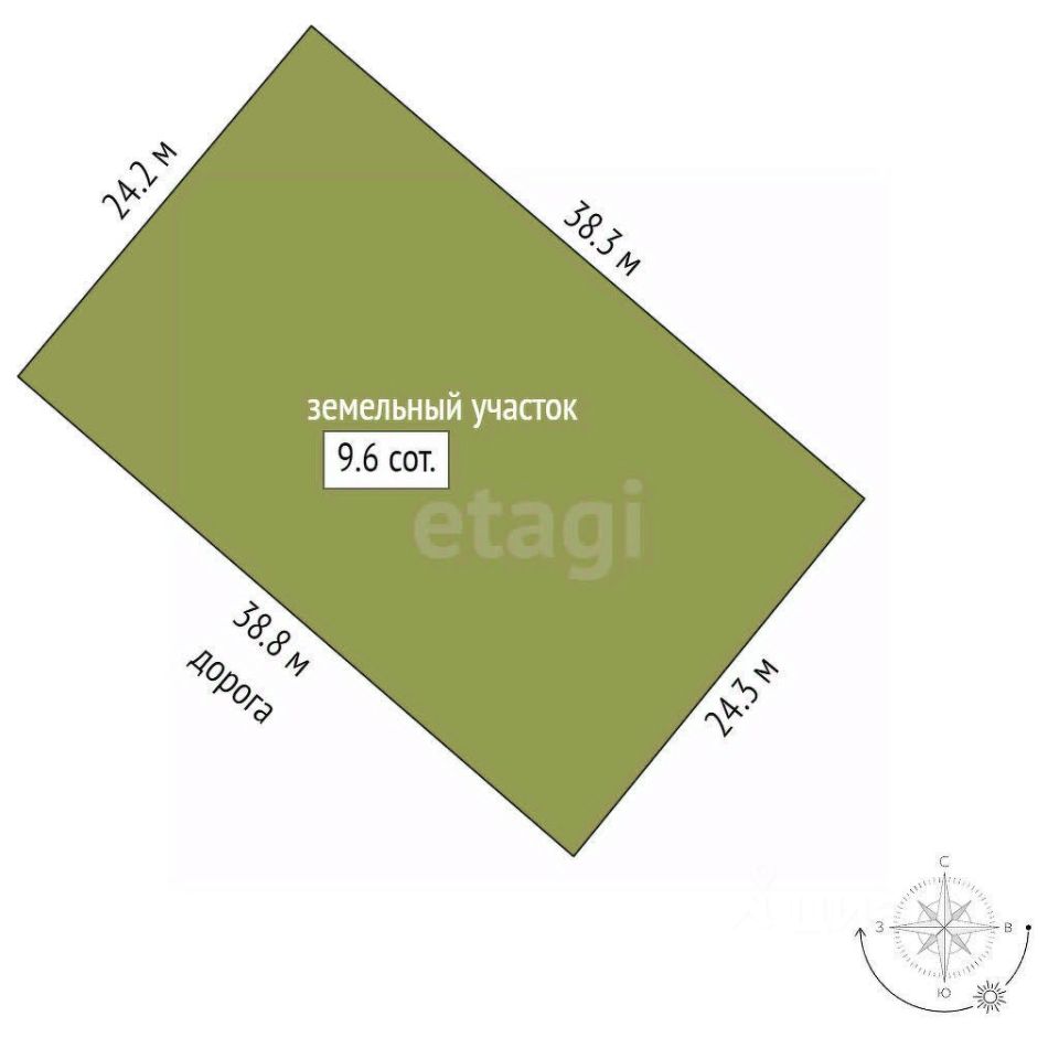 Площадь участка - 9,57 соток, для ведения садоводства.