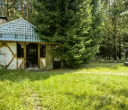 - расположен у леса (калитка в лес),