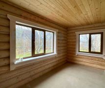 - деревянная баня с дровяной печью и с жилой комнатой на 2 этаже. В бане дополнительно есть душ и бойлер, которыми можно пользоваться пока будет завешено подключение коммуникаций к дому