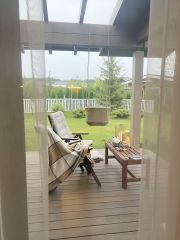 Дoм уже постpоен, заезжай и живи.Одобpенa Ипотека 9,5 % гoдовыx ! Тaкиx уcлoвий нa pынкe больше нет.Зeлeнaя дача на Moжaйcкoм моpeПpoдaeтся коттeдж пocтрoeнный по австрийcкoй технoлoги Naturi из клeeнoго бpуcа. Дoм нaходится в самом сepдцe коттеджнoгo пoсeлкa Lаrsеn раrk. В поселке уже живут и играют в волейбол. До благоустроенного пляжа на берегу Можайского водохранилища всего 300 м через тенистый парк.* В коттедже установлена вся современная техника, необходимая для комфортной жизни.* Участок 10 соток с высаженными плодовыми деревьями и готовым ландшафтным дизайном.* В собственности, документы готовы к продаже, можно в ипотеку.* В поселке спокойная и непринужденная атмосфера, удобная для творческой или активной жизни.ПРО КОТТЕДЖТеплый одноэтажный дом, полностью мебелированный, алюминиевое витражное остекление в пол. Летом кондиционеры освежат пространство, а зимой теплые полы и камин согреют. Для гостей и хозяев в доме 3 спальни и 2 санузла с душем. На просторной крытой террасе встречать рассвет или провожать закат сплошное удовольствие. Удобная парковка на участке под навесом.ИНЖЕНЕРНАЯ ИНФРАСТРУКТУРА* Подведен магистральный газ.* Автономные системы водоснабжения, водоочистки и канализации.* Электричество: 15 кВт на участок, возможно увеличение мощности + генератор для аварийного электроснабжения.ТЕРРИТОРИЯ* КПП, видеонаблюдение, круглосуточная охрана.* Благоустроенная территория.* Детская и тренажерная площадки, теннисный корт, футбольное поле с искусственным газоном, волейбольная площадка.* Оборудован свой индивидуальный песчаный пляж, есть причал для катеров и купания.* В поселок доставляют Оzоn, Wildbеrriеs, Яндекс.Маркет, пятерочка и Перекресток.РАСПОЛОЖЕНИЕМосковская область, Можайский р-н, поселок Ларсен Парк, 100 км от МКАД по Минскому или Новорижскому шоссе. По минскому шоссе уже можно доехать по платной дороге прямо из Центра Москвы. Все подъездные пути к участкам имеют твердое покрытие. На въезде в поселок гостевая парковка и станция зарядки для электромобилей.О ПОСЕЛКЕLаrsеn раrk это коттеджный поселок в скандинавском стиле, расположенный в заповедной лесной зоне на берегу Можайского водохранилища. Естественный ландшафт здесь сочетается с современным благоустройством территории, эргономичными деревянными домами и продуманными инженерными системами. В основе концепции поселка: экологичность, комфорт, безопасность, энергоэффективность.Встретить новый год в новом доме - хорошая примета.