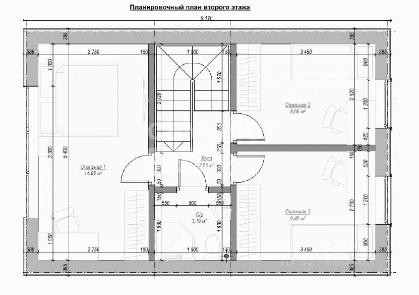 • 2 этаж: 3 раздельные комнаты