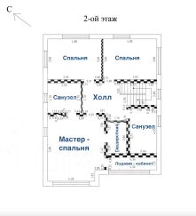 2 эт: большая мастер спальня с санузлом, гардеробной и выходом в лоджию, еще две спальни, гардеробная и санузел;