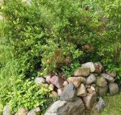 На участке растут многолетние цветы, декоративные кустарники, плодовые деревья и плодовые кусты.