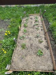 Посажены фруктовые деревья и кустарники: две яблони, две вишни, смородина, малина, клубника.