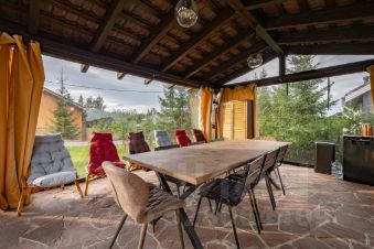 Территория комплекса с ландшафтным дизайном, с ровным рулонным зеленым газоном, детскими и игровыми площадками, с личным садом, располагается на первой береговой линии водохранилища "Мжут" с выходом на берег, где расположен собственный песочный пляж с беседкой.