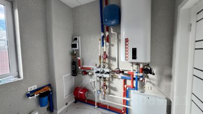 Коммуникации: электричество 15 кВт, газ по границе участка, септик, проведены подготовительные комплексные работы для подключения к городскому водоснабжению.
