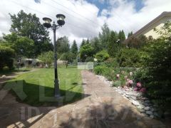 В темное время суток территория освещается декоративными фонарями, установленными по всему участку. Растут деревья плодовые, хвойные, много цветов и зелени, ухоженный газон.