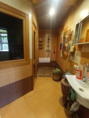Участок сухой, ровный, правильной формы с ландшафтным дизайном. На территории участка расположены вольер для собаки, дровница, курятник, хоз. блок, летняя кухня с печкой, кованая мангальная зона. В отдельном здании бассейн с подогревом.