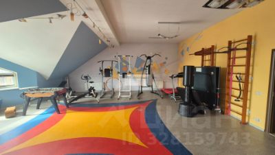 На первом этаже сауна с купелью, гараж 32,5 кв м с автоматическими рулонными воротами, гостиная с камином. В доме просторная мансарда, обустроенная под тренажёрный зал с разнообразным современным спортивным инвентарём.
