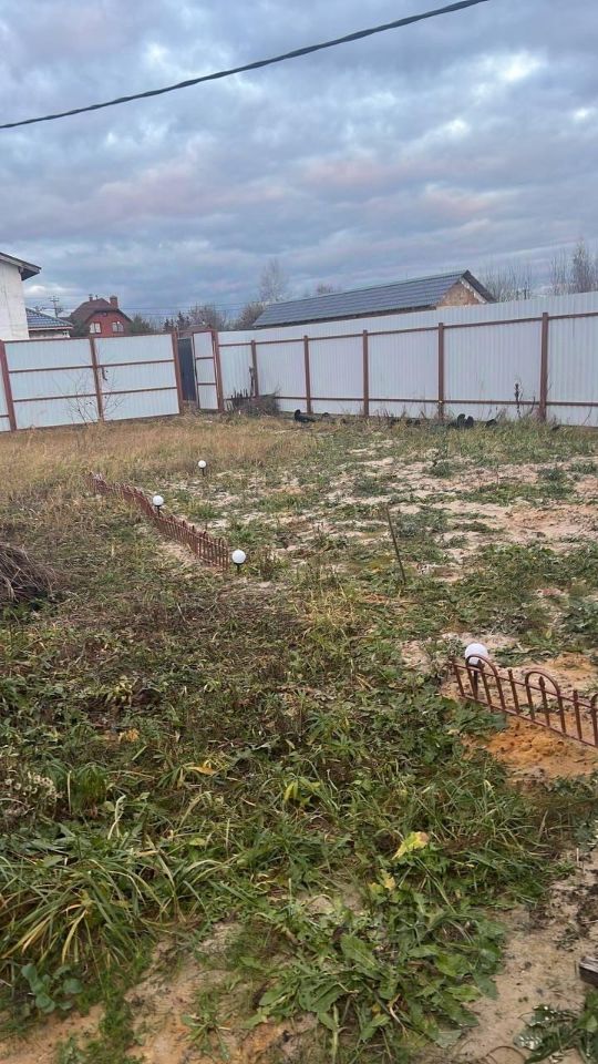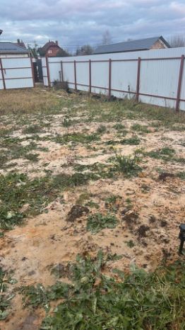 Продаётся ровный земельный участок недалеко от Москвы. Территория участка огорожена металлическим забором, есть калитка.
