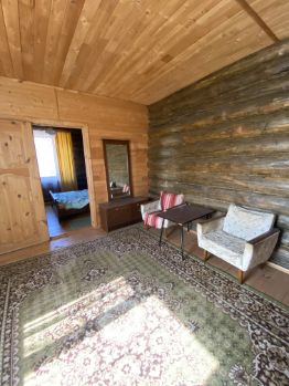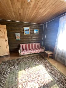 Дом 3-х этажный на высоком бетонном ленточном фундаменте. Бревенчатый. Обшит вагонкой снаружи и внутри. Водопровод заведен в дом от колодца, поэтому есть и холодная и горячая вода. Газ проведён в СНТ. Труба лежит прямо по границе участка. Дом очень тёплый, подходит для круглогодичного проживания.
