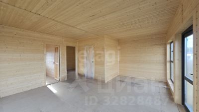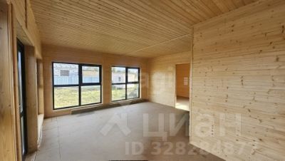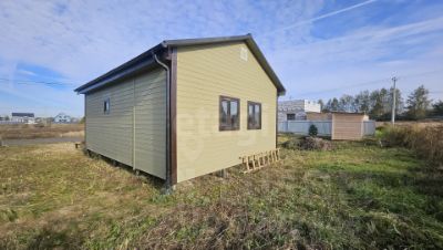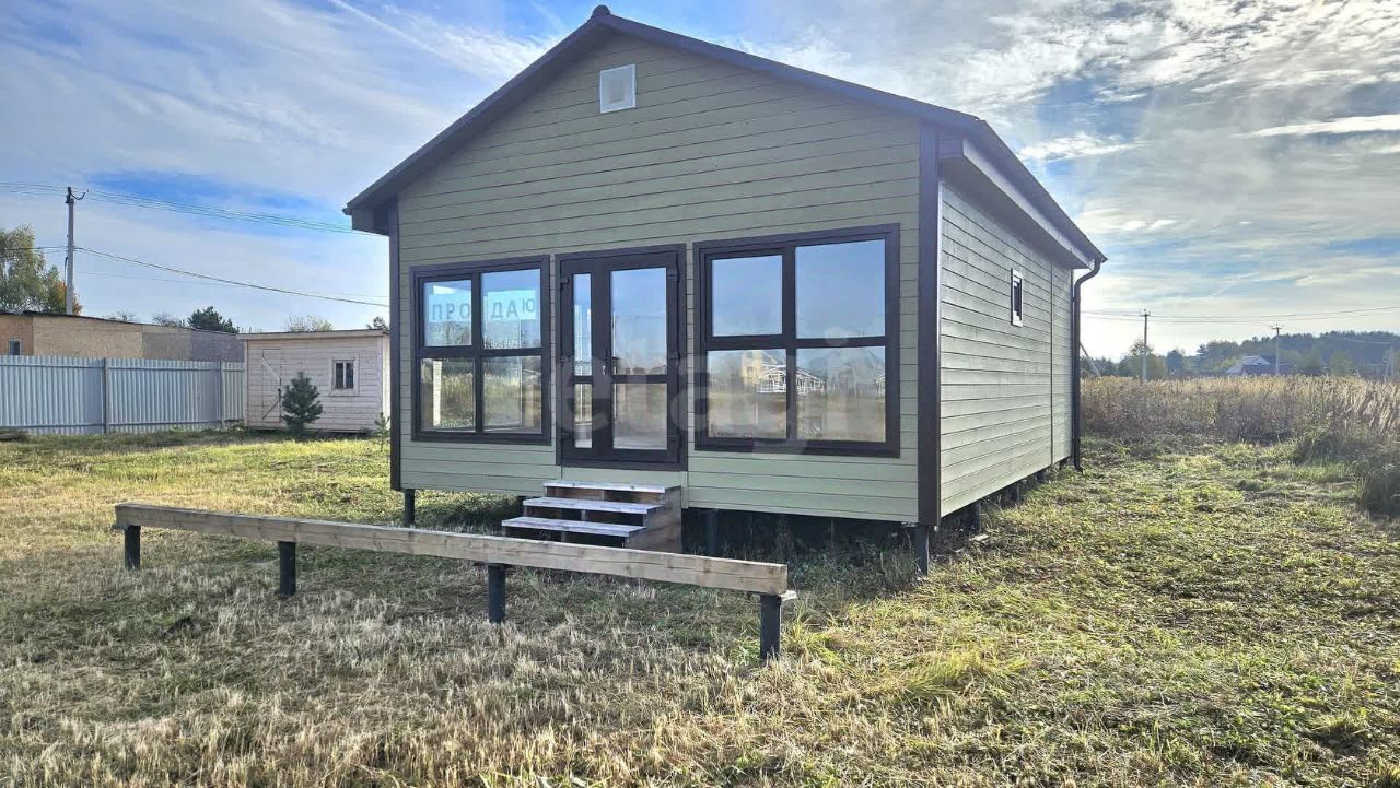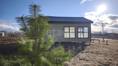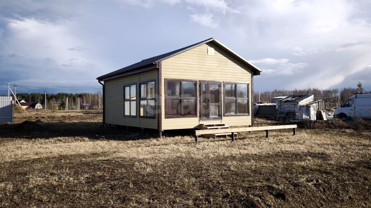 Для финишной отделки использована вагонка внутри и имитация бруса снаружи, во всех помещениях установлены ламинированные стеклопакеты. К дому предусмотрены сваи под будущую веранду, а на участке уже есть хозяйственный блок и земляничная поляна.