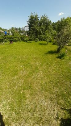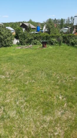 Участок ровный 6 соток. На участке фундамент 8.5*8.5 и забетонированная площадка под парковку. Есть электричество. Огорожен с трёх сторон. Есть ворота. Участок ухоженный с газоном, цветами, кустами и деревьями. Рядом с СНТ лес и озеро.