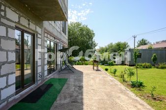 Новый, просторный дом площадью 330 кв.м. плюс две террасы. Грамотное расположение дома с учетом сторон света. Очень продуманная планировка. Выровненный участок площадью 10,5 соток. Коммуникации: электричество, магистральный газ, вода - скважина, септик, кольцевой дренаж.