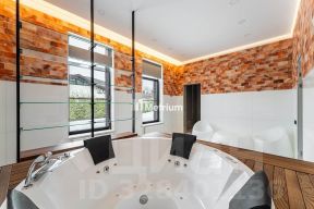 В основном доме продумана идеальная планировка для комфортной жизни семьи. Просторная мастер-спальня площадью 63 кв.м с собственной гардеробной и санузлом, три дополнительные спальни (две из них также с гардеробными и санузлами), гостевой санузел, большая гостиная, совмещённая с кухней, и изысканная столовая зона 49 кв.м с выходом на открытую летнюю террасу. Отдельная кухня, удобная хозяйственная комната и светлая прихожая-холл дополняют пространство. Особая гордость дома -зона SPA с комнатой отдыха, джакузи и хаммамом, где можно по-настоящему расслабиться и восстановить силы.