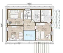 Удобная планировка. Отдельные комнаты позволяют разместить всю семью комфортно, а общая зона объединяет пространство для общения и приёма гостей.