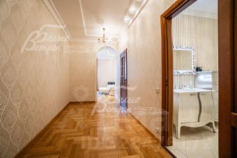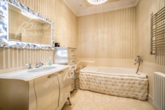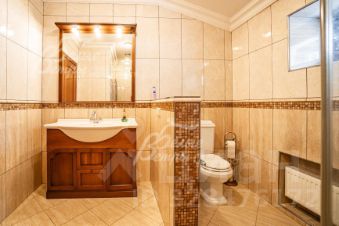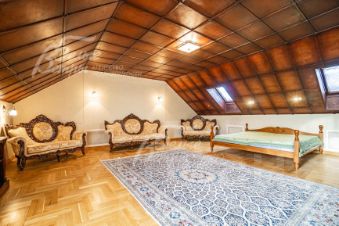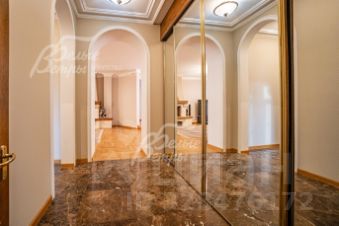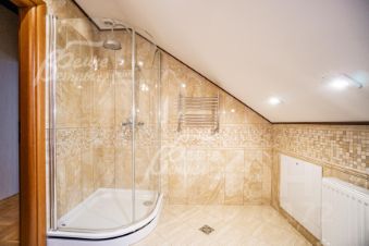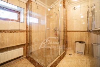 Описание внутренней отделки: отделка выполнена в классическом стиле с использованием дорогих натуральных материалов, гипсовой лепнины и декора из массива дерева. На стенах тканевые обои (шелковые) в спальнях, венецианская штукатурка в СПА-зоне, покраска, плитка в санузлах. Отделка полов: крыльцо - гранит, прихожая и кухня - мраморная плитка Imperador Dark, жилые комнаты и гостиная - дубовый паркет наборный Майкоп, СПА-зона и санузлы - плитка и мозаика. Лестница на стальном каркасе, отделка ступеней, поручней и балясин - дуб, ширина 120 см. Потолки со сложными элементами, лепниной из гипса, на мансарде отделка потолка деревянными панелями. Установлена сантехника в классическом стиле марки GSI, эксклюзивные смесители, в мастер-спальне ванна с массажем, украшенная камнями Swarovski, с каретной пиковкой Treesse (Италия), в санузле на 2-м этаже ванна Treesse. Электрические теплые полы в СПА-зоне и в санузлах. Радиаторы чугунные на ножках в классическом стиле и современные арбониевые (Arbonia) - AFG Arbonia Forster Holding AG. Дорогие межкомнатные двери из массива GAROFOLI - SPLENDIA (Италия), полностью выполнены из дерева. Подоконники мраморные Crema Marfil..