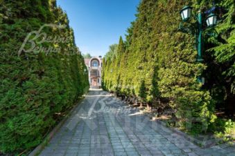Благоустройство участка: на участке множество взрослых хвойных деревьев, декоративные кустарники, 5 яблонь, 3 груши, сливы и другие плодовые деревья. Красивая аллея из взрослых туй ведет к парадному входу в дом. Выложены дорожки из брусчатки и плитки, установлено уличное освещение. Парковка для авто вмещает до 12 авто..