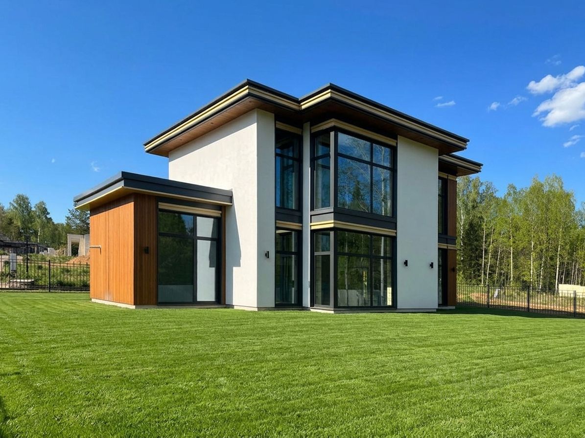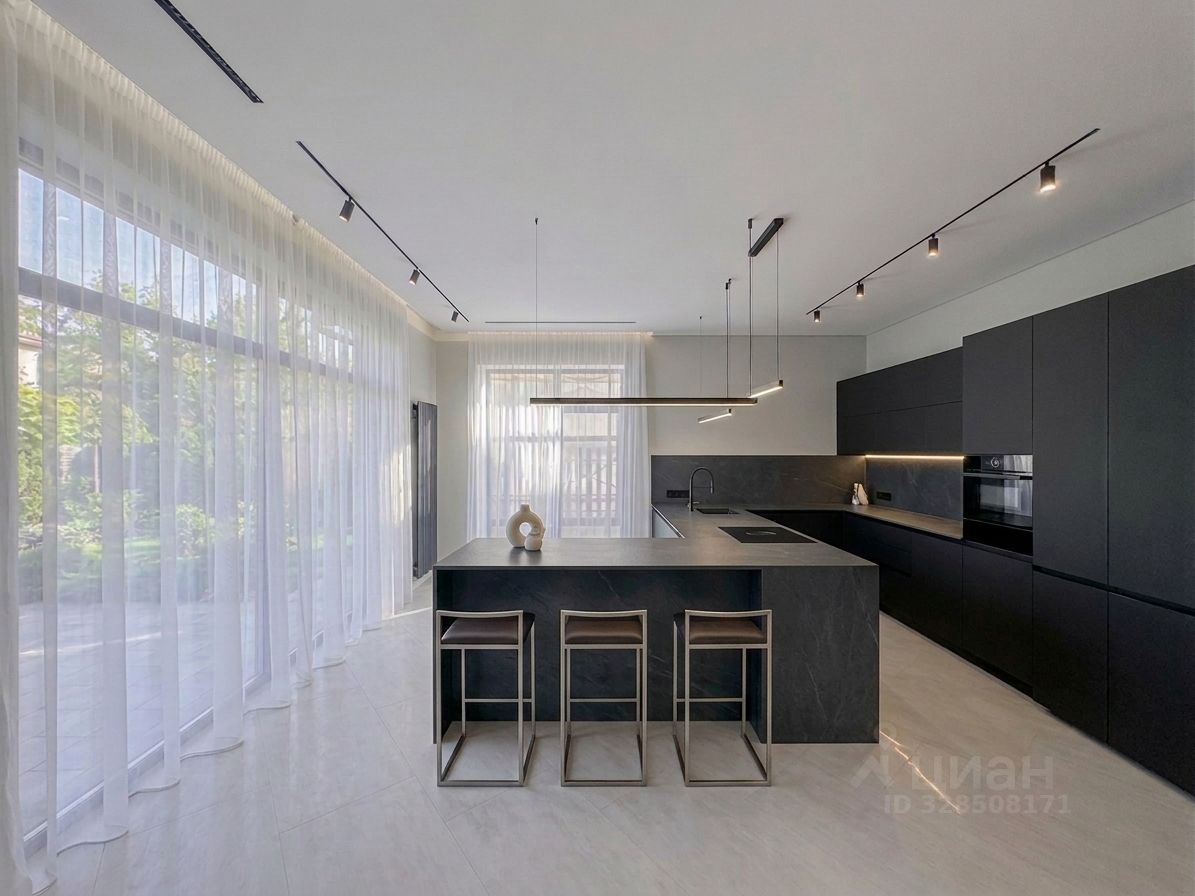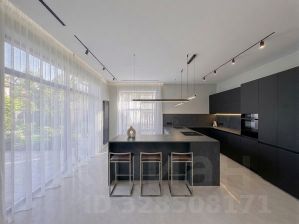 При строительстве и отделке дома использовались дорогие современные материалы: панорамные окна, итальянская плитка, немецкая кухня и техника Kuppersbusch, В доме выполнена дорогая отделка: 3D панели, натуральный камень, широкоформатный керамогранит, планки МДФ под дерево.