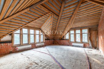 Дом без отделки, состоит из цокольного этажа, двух полноценных этажей и мансарды.