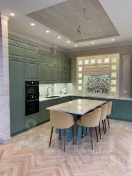 Кухня-гостиная (81 м²): Сердце дома. Комбинация кухни (23 м²) и гостиной (58 м²) совмещенное со вторым светом создаёт огромное единое пространство для семейных ужинов, приёма гостей и отдыха. На таком пространстве размещен большой обеденный стол, кухонный гарнитур рядом стол "остров" и несколько диванных групп.