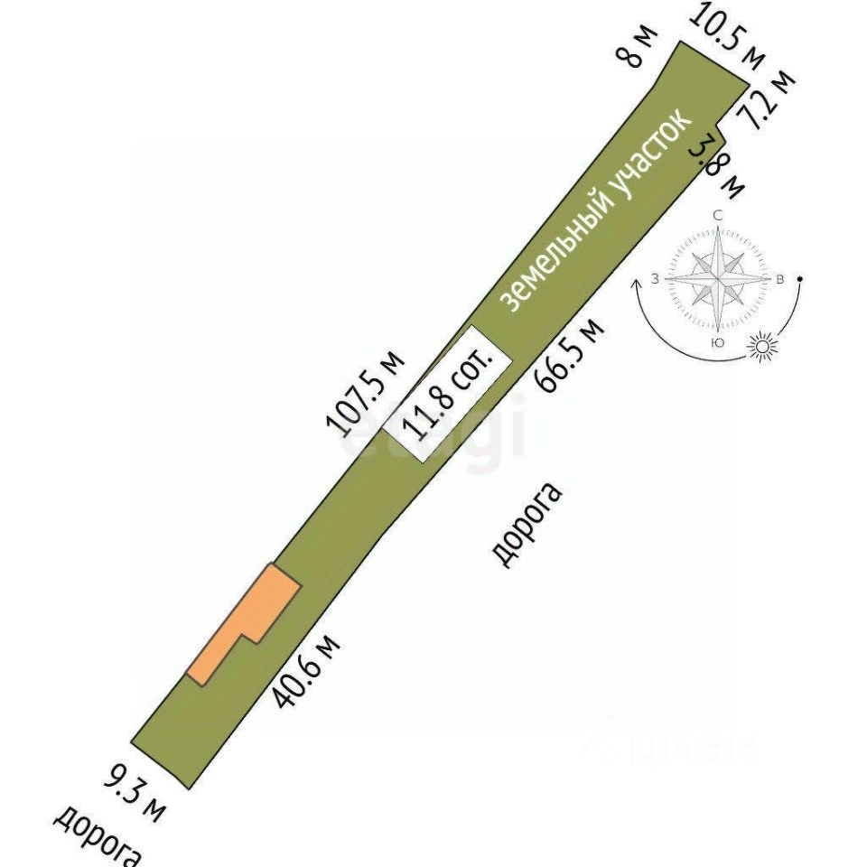 Участок обладает высоким потенциалом для строительства индивидуального жилого дома. На территории находится сгоревший деревянный дом площадью 106.4 кв. м. Участок полностью подготовлен для строительства: подключено электричество (15 кВт), есть возможность подключения к газу и воде — центральные коммуникации проходят по границе территории.