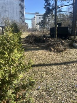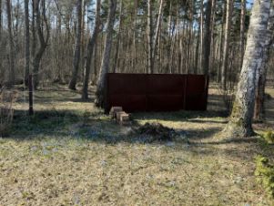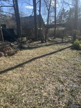 Участок вытянутый, прямоугольной формы (7014 м), с идеальной землёй — чернозём. С одной стороны — граница с сосновым лесом, с другой — соседство с хлебокомбинатом (небольшой гул возможен). Одна часть участка полностью в тени леса, другая — солнечная, идеальна для огорода и бассейна.