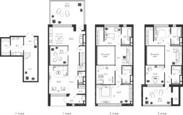 С внутренней стороны таунхауса предусмотрены открытые террасы,