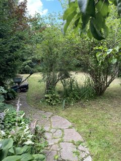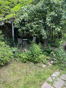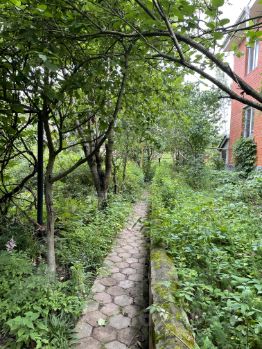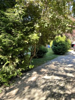 Участок 15 соток, очень красивый и зеленый, посажены елки и сосны, плодовые деревья. В летний период красиво цветет черешня, розы и ароматный жасмин.