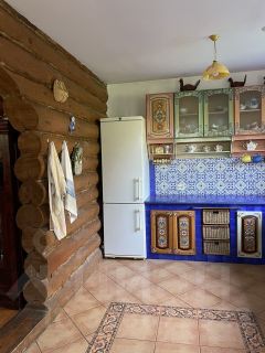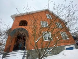 Дом бревенчатый, обложен кирпичом. Газовое отопление, электричество, 2 колодца (один для водоснабжения, второй для полива), центральная канализация. Подземный этаж под всем домом, половина которого подсобные помещения, половина гараж.