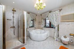 Роскошный 3-х уровневый особняк с эксклюзивной дизайнерской отделкой, площадью 900 кв.м. с использованием дорогих материалов, дерева, предметов декора, полностью готов для проживания.