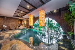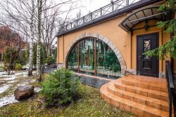 Отдельно от дома обустроена lounge-зона с бассейном с противотоком, джакузи, зоной отдыха и тренажерным залом в едином дизайнерском-балтийском стиле. Здесь же располагается винный погреб, домашний кинотеатр, музыкальная студия и дополнительный гараж на 2 машины.