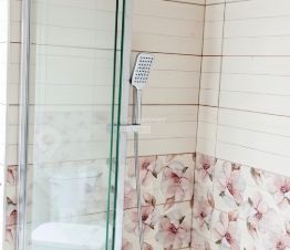 - в ванной кафель, современная стиральная машина с функцией сушки.