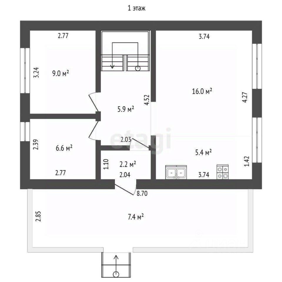 Планировка дома продумана для комфортного проживания семьи: на первом этаже — кухня-гостиная, изолированная комната, санузел; на втором — три изолированные спальни и дополнительный санузел. Окна выходят на восток и запад, обеспечивая равномерное естественное освещение. Объект подходит для круглогодичного использования как основное жилье или загородная резиденция.