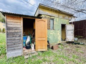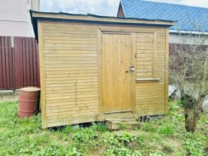Дом расположен на участке площадью 5 соток. Участок ровный правильной формы. На участке есть три подсобные постройки. Два колодца.