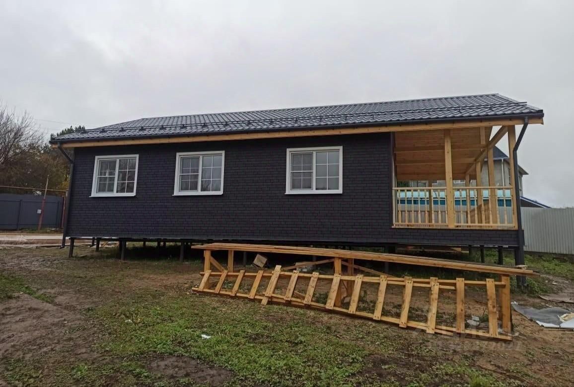 1 Собственник, новый одноэтажный каркасный дом. Размеры дома 8х10 м с террасами 3х8 м и 1х3 м, а общая площадь составляет 107 м². Все материалы камерной сушки. Стены и стропила из доски 40х200 мм, перегородки из обрезной доски 40х100 мм, лаги пола из доски 50х200 мм, на стены и фронтоны устанавливаются ветрозащитные плиты Белтермо, обшивка стен, перегородок, потолка — имитацией бруса, на полу уложена фанера 10мм. Высота потолка 2.60 м.