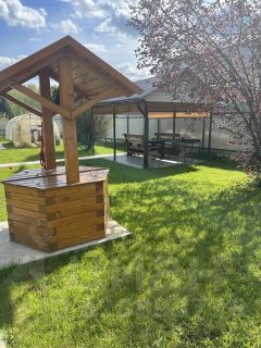 Скважина задекорирована под колодец и имеет точку полива в летний период.